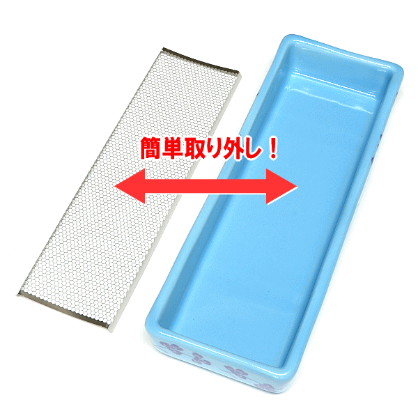 規格 本体サイズ:18.6cm×6.8cm×高さ2.8cm 材質:本体陶器、網ステンレス ギフト対応について 対応可能、ただし有料 包装は、1個+55円(税込) のし紙は、非対応 ご注文フォームの備考欄に記入してください。