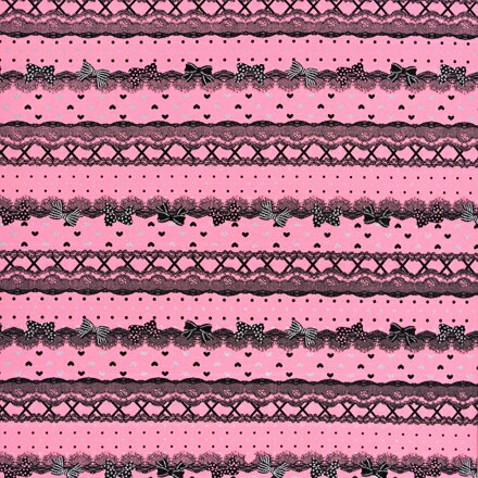 ■生地柄特長愛らしいローズピンクに黒のレース模様が大胆。