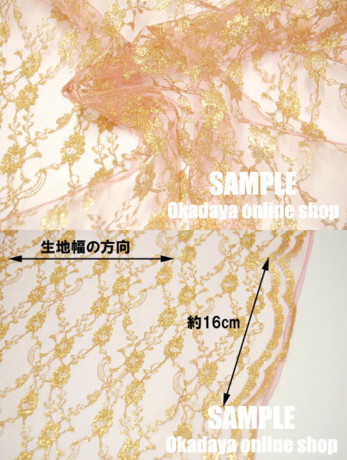 ●素材:ラメ40% ナイロン60%●生地幅:約110cm【生地の特徴】ラメ糸の刺繍がキラキラと輝く、ゴージャスなレース生地です。