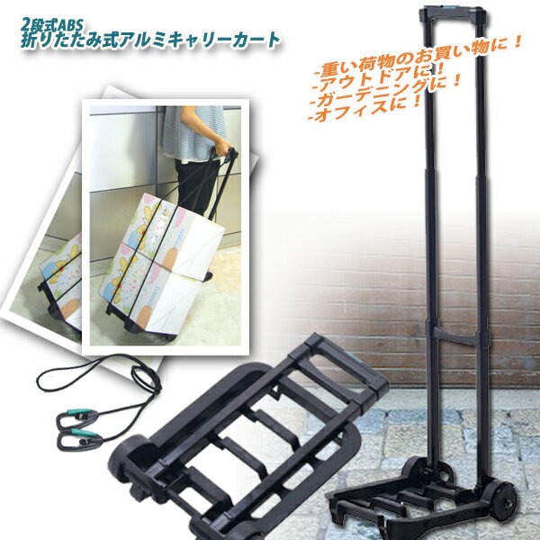 3000円ポッキリ 送料無料 2段式ABS+折りたたみ式アルミキャリーカート 【75-94361】ストレッチコード付 2輪 耐荷重30kg 荷台