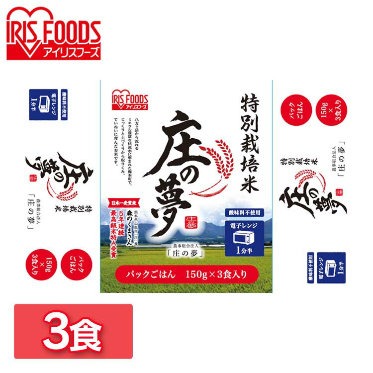 庄の夢パックご飯 150g×3パック 米 お米 コメ ライス ごはん ご飯 白飯 白米 ブランド米 銘柄米 低温製法 パック パックごはん パックご飯 アイリスフーズ